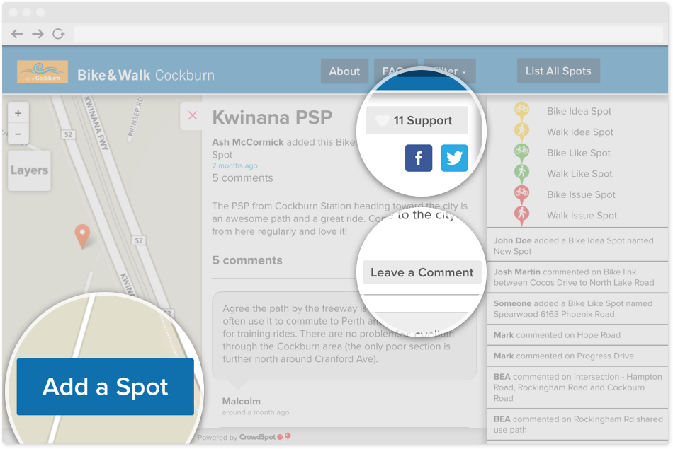 CrowdSpot was founded by urban planners and tech professionals interested in using technology to improve public participation and make better places.
